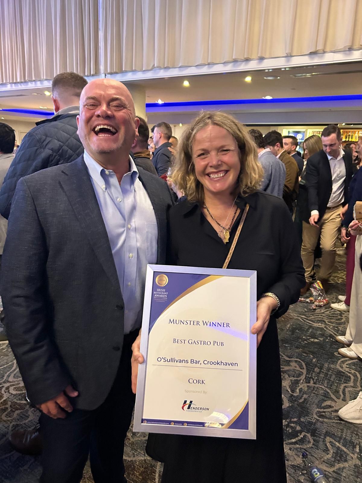 O’Sullivan’s of Crookhaven by Mizen Head was named Munster’s Gastropub of the Year. It comes as the famous ‘pub on the pier’ in the little West Cork harbour village is temporarily closed for a major renovation project, and is due to re-open for the Summer season. In the meantime, their famous chowder and crab sandwiches are available next door in Nottages.