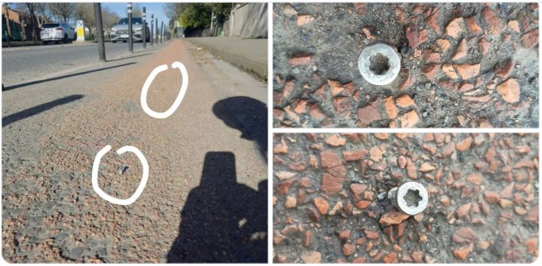 IMAGES: Dublin Commuters posted these photos of the screws in the cycle lane with close-up images of the screws.