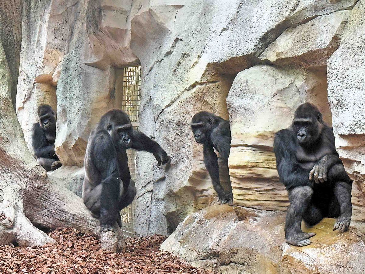 Four large gorillas from the Royal Burgers” Zoo in Arnhem, the Netherlands, are seen at Nanjing Hongshan Forest Zoo in the capital of Jiangsu province after arriving in February 2025. CHINA DAILY