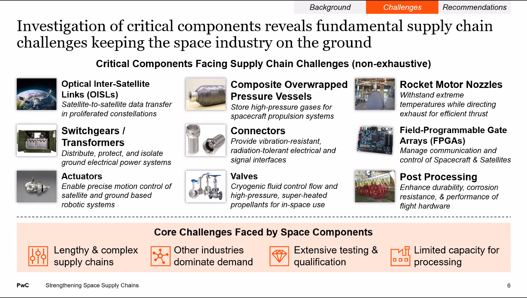 The AIA-PwC study found supply gaps for nine critical components currently are creating the biggest roadblocks for space manufacturers. (Credit: AIA-PwC)