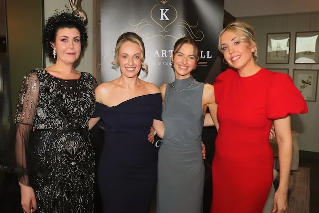 Jennifer Falvey, Alison O’Keeffe, Rachel Durran and Ashley Tobin at the Kerry Arts Ball in Ballyroe Lodge on Saturday night. Photo by Dermot Crean