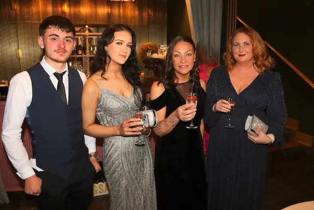 Thomas Stratton O’Connor, Katelyn McBride, Shauna Stratton and Clíona Whelan at the Kerry Arts Ball in Ballyroe Lodge on Saturday night. Photo by Dermot Crean