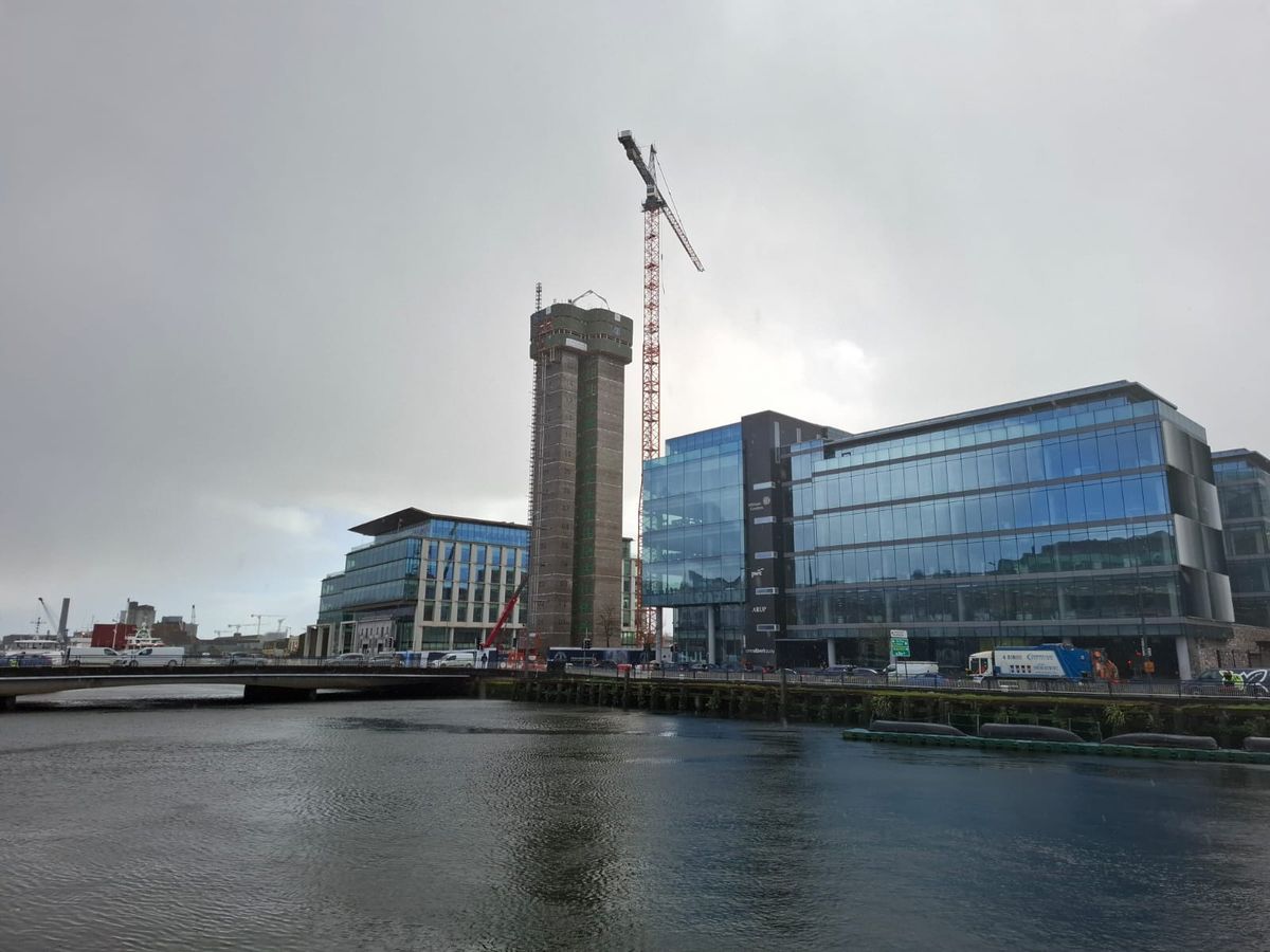 With the slipform method, the concrete form and working platform are raised by means of hydraulic jacks as the workers always stay one floor ahead of the poured concrete – it can go almost as fast as concrete can fully harden. When topped out, the 24-storey building will tower over the nearby Elysium, almost a quarter as tall again as Cork’s current tallest tower. It will be the tallest building in Ireland, just beating the Obel Tower in Belfast at slightly over 85m.