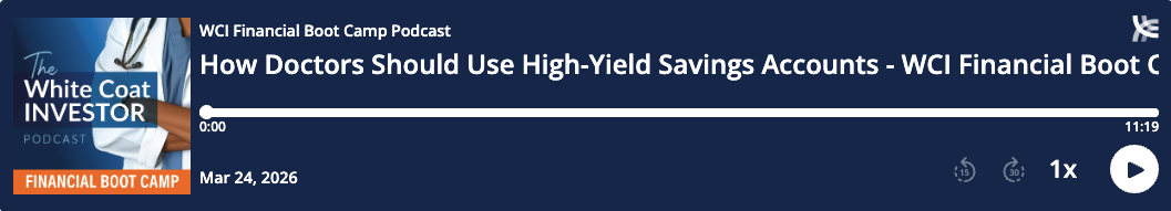 The White Coat Investor podcast is for your entertainment and information only. It should not be considered financial, legal, tax, or investment advice. Investing involves risk, including the possible loss of principal. You should consult the appropriate professional for specific advice relating to your situation.