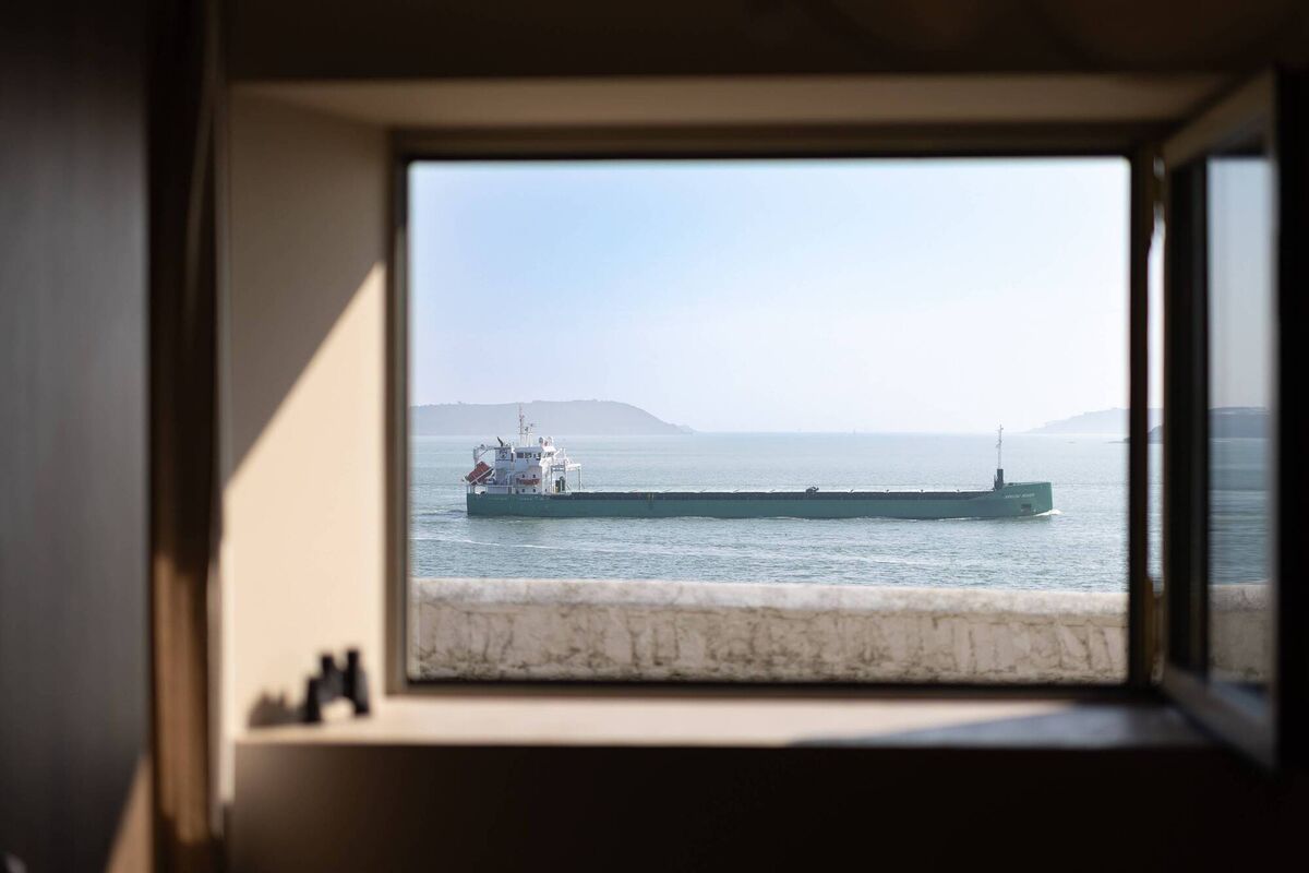 This combination of playful and polished continues throughout the house — in the sleek kitchen Adrian points out the extra deep worktop surrounding the sink: “This increased countertop depth is intentionally scaled so your line of sight is perfectly aligned with the sea view across the living area when you’re standing here.” Chores were never so relaxing.