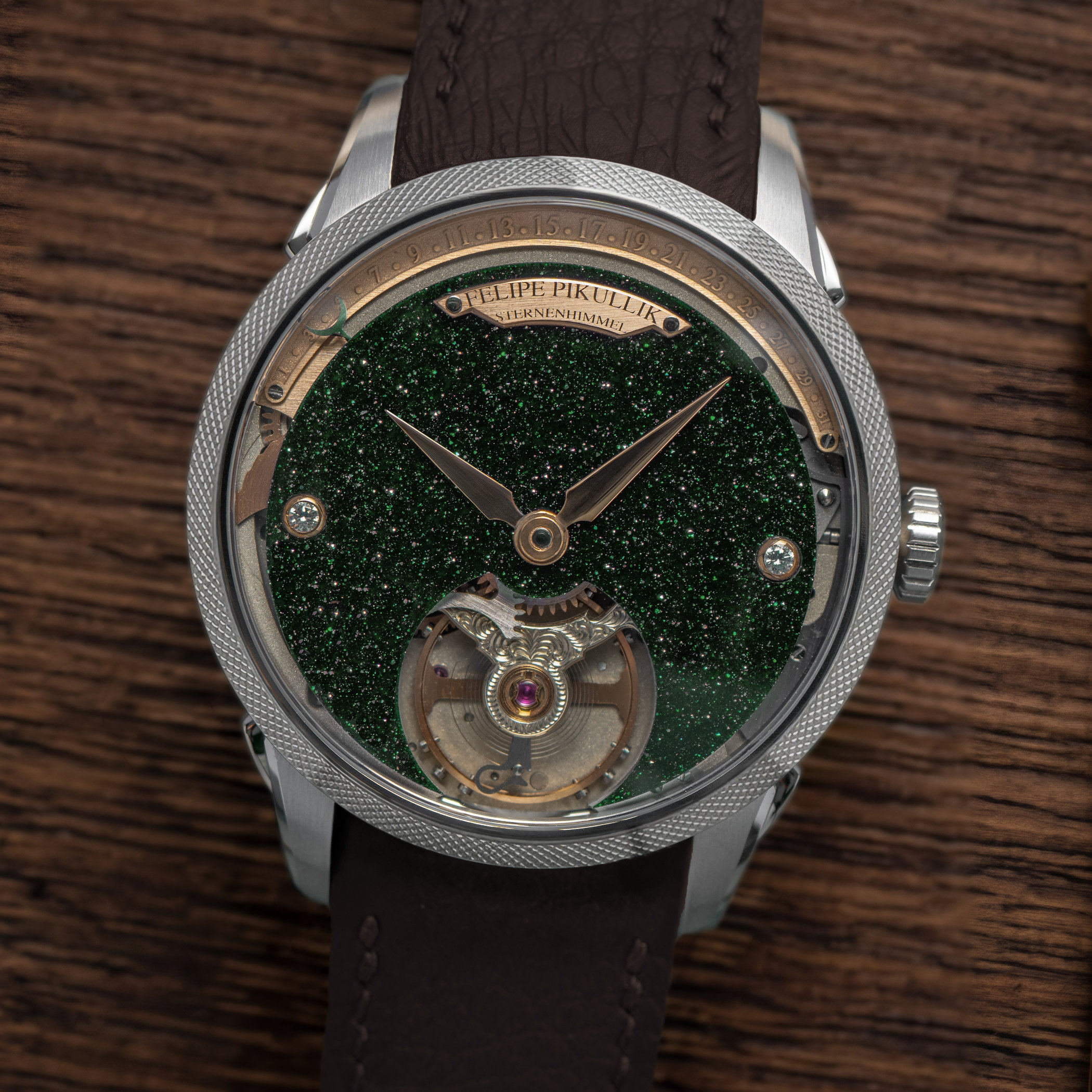The Sternenhimmel FPA1 is Pikullik’s first proprietary calibre platform, designed from the ground up in Berlin. Named FPA1 (Felipe Pikullik Architektur Eins), it is a foundation made to support the future of the atelier’s collection. While the familiar aventurine dial keeps a visual link to his early work, the mechanics beneath mark a decisive transition, from modification to construction, from learning to creating.