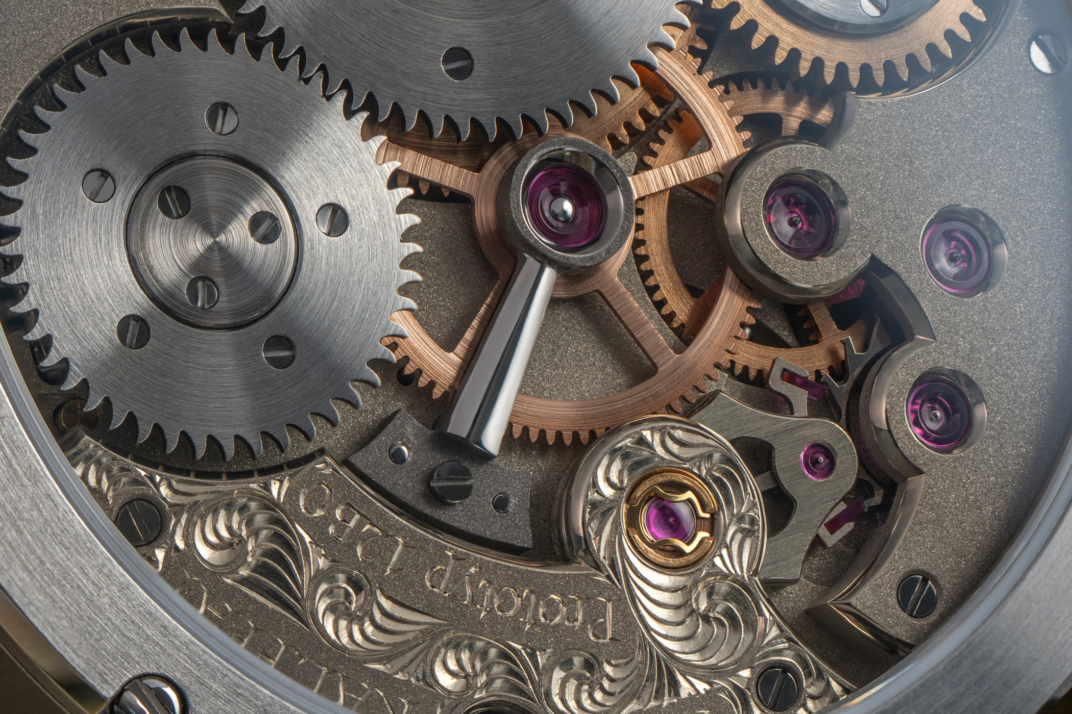 The new FPA1 calibre introduces a fresh architecture rather than adapting an existing base; it operates at 18,000 vibrations/hour and delivers a 46-hour power reserve. The crown and winding wheels of the FPA1 feature wolf ’s-tooth gearing, a classical solution for smoother energy transfer, reduced friction and long-term wear. The click mechanism, usually exposed, is here enclosed within its own structure to prevent microscopic debris generated during winding from spreading across the movement.