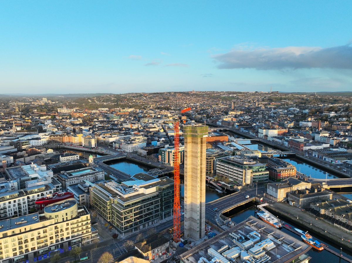 Now, Cork is back on top. The 25-storey Railyard development is now a prominent fixture on the Leeside skyline. The apartment block is on the site of the former Sextant pub, and the main core, which includes the stairs and lift shaft, stands at over 85.5m and was completed on Saturday, March 28th.