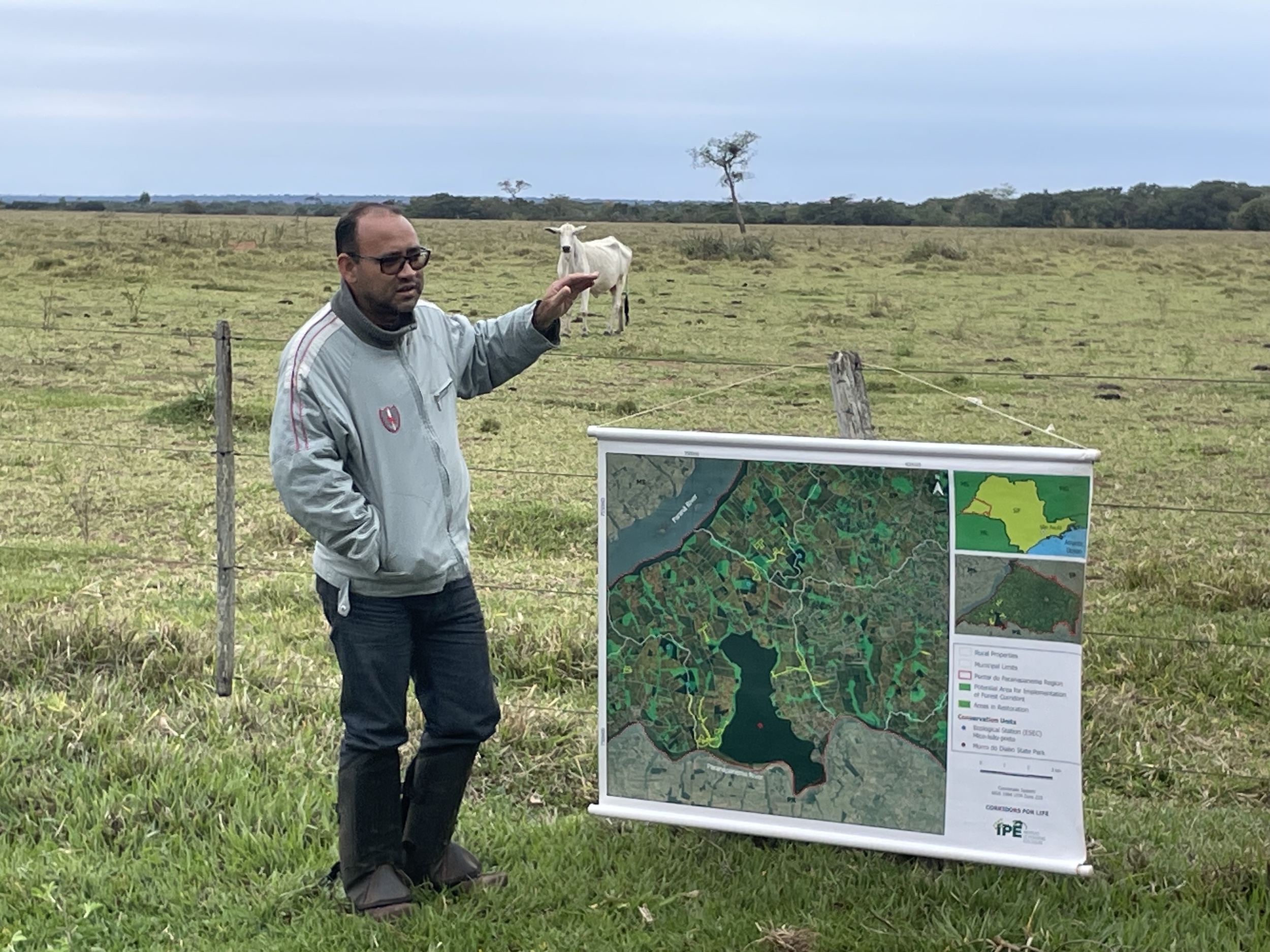Haroldo explains the environmental restoration work carried out by IPÊ. Image by Sibélia Zanon.