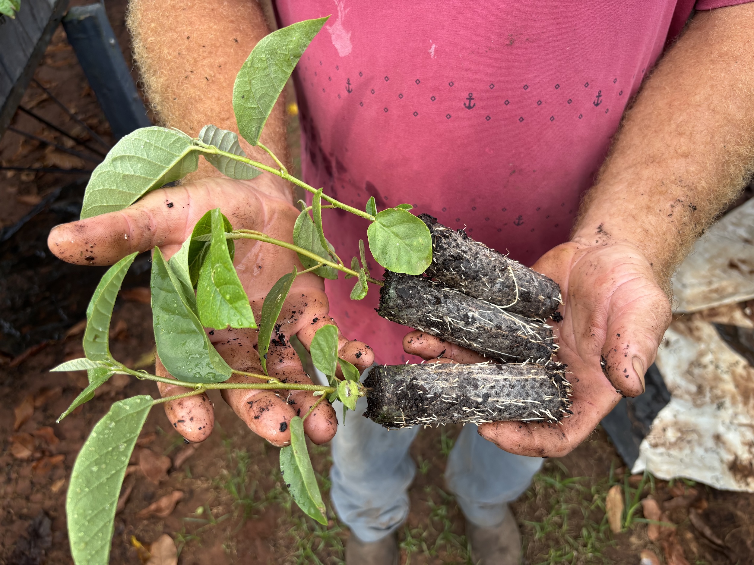 Edmilson with seedlings used in reforestation efforts. Image by Sibélia Zanon.