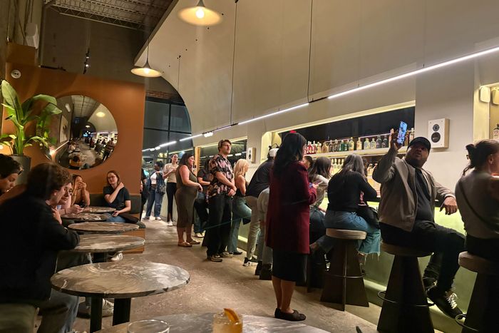 The menu is Summer House–themed for the occasion; I order the Shoulder Pads on the Beach, an exquisite mocktail of pink champagne, a saffron-y yuzu spirit, and peppercorn, while my friend Megan gets the beer-and-shot combo: a white peach Loverboy and a blend of nonalcoholic citrus spirits. They are $15 and $12, respectively, both of which cost more than the vodka lemonade spritzes we’ve just had at the rooftop happy hour next door, but as the menu notes, every cocktail purchase enters you into a raffle to win a signed copy of Radke’s memoir, Cake Eater. The lovely bartenders Kendra and Sasha tell me they don’t watch Summer House, and therefore have had to tell nosy patrons (including me) that they “have no tea to give,” but were briefed by management not to comment on the news regardless.