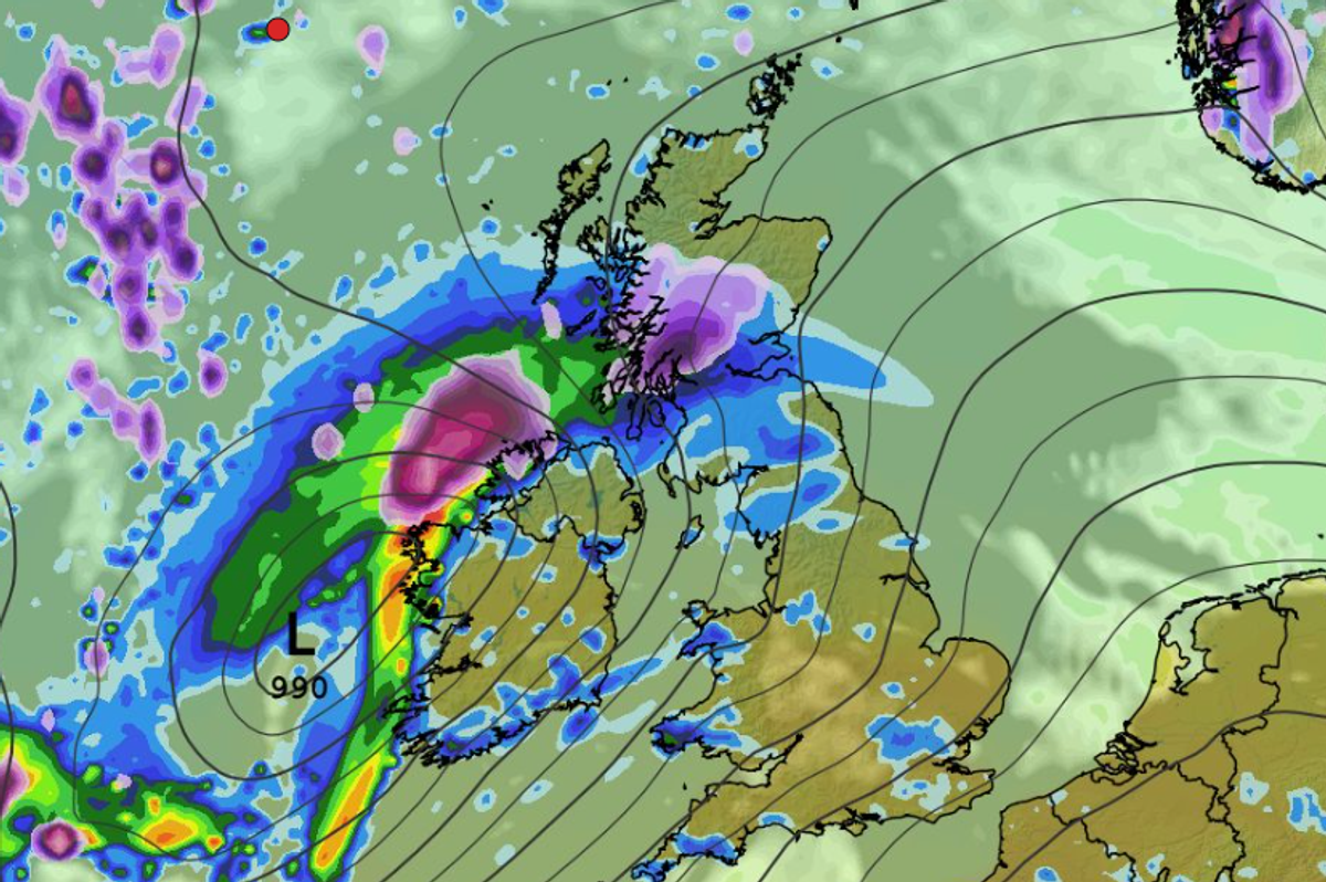 Centre of Storm Dave passing over the North of Ireland tomorrow afternoon(Image: WxCharts)
