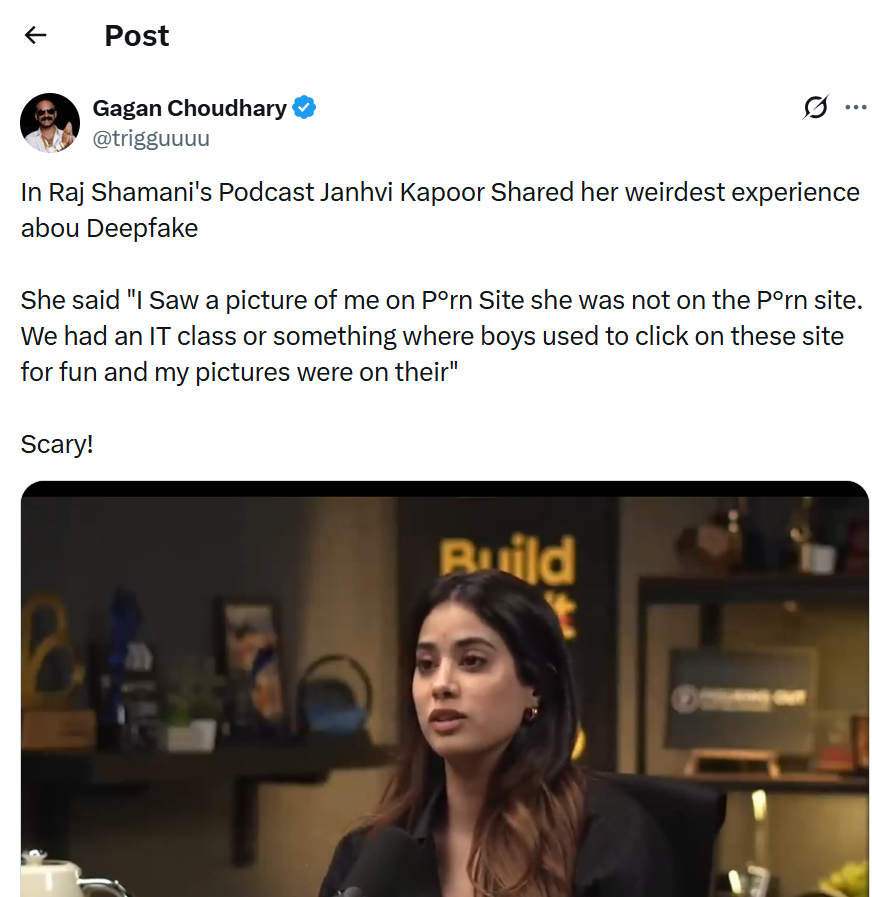 Janhvi Kapoor sat on raj Shamani’s podcast and casually unleashed one of the most disturbing celebrity confessions in recent memory. She described discovering her own face plastered on a porn website—except it wasn’t her body. It was a deepfake. Someone had taken her pictures and stitched them onto explicit content without her knowledge or consent.