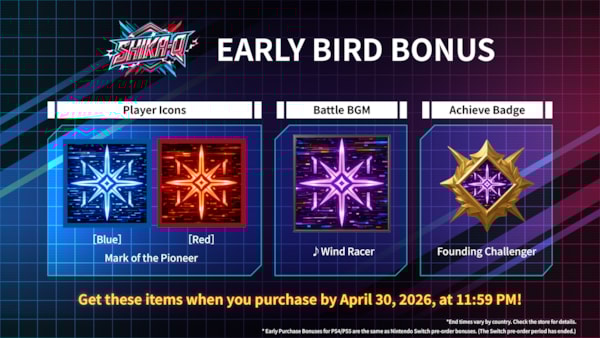 Bonus Items: Customers who purchase during the early period will receive four in-game cosmetic items: