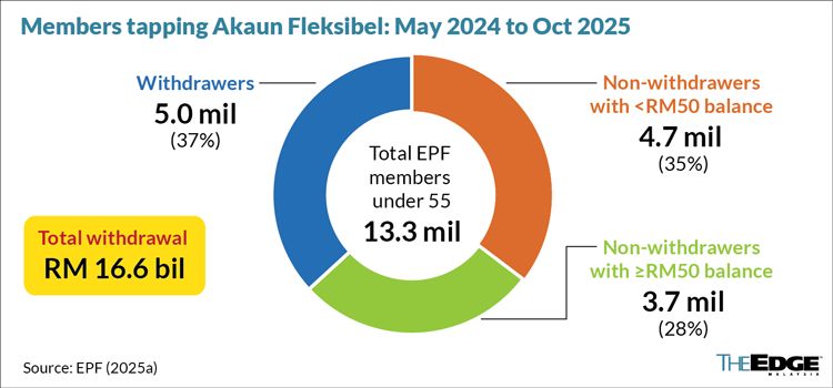 KUALA LUMPUR (April 9): Nearly five million Employees Provident Fund (EPF) members under the age of 55 have tapped into the ‘Akaun Fleksibel’ facility as of October 2025, with total withdrawals reaching RM16.6 billion, according to the pension fund’s latest research report.