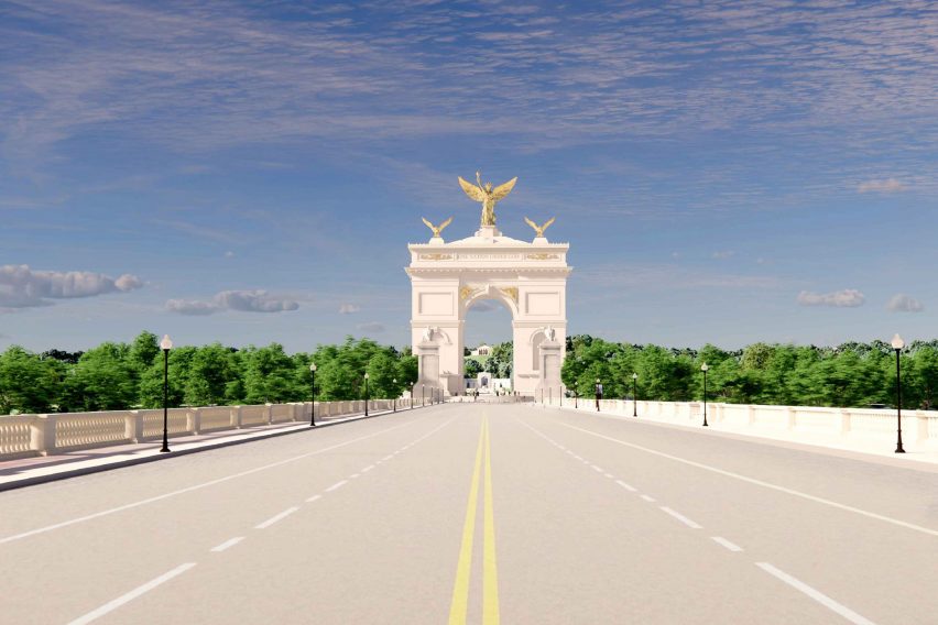 Trump previously presented models of the arch at a fundraising event at the White House in October. At the time, it was unclear if there was an architect on the project, although architecture studio Harrison Design produced renders for the event.