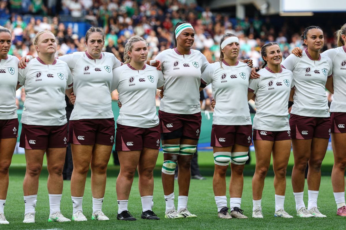 New Zealand Black Ferns vs Ireland – Ireland’s Stacey Flood, Cliodhna Moloney-MacDonald, Siobhan McCarthy, Sadbh McGrath, Eimear Corri-Fallon, Claire Boles, Emily Lane and Anna McGann (Image: ©INPHO/Ben Brady)