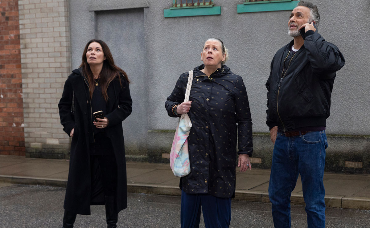 Some time later, Bernie, Dev (Jimmi Harkishin) and Carla (Alison King) are concerned to see smoke pouring out of the windows of Roy’s flat.