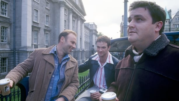 At its centre are disillusioned writer Raymond (Don Wycherley), would-be barrister Michael (Simon Delaney) and professional chancer Barry (Keith McErlean). Other than a grubby Georgian house on the quays, what these men share, as Carney put it, is a feeling “of a kind of male impotence … of not quite being able to get off your arse.” Throughout the series they stumble through adulthood against a boozy backdrop of day drinking, hook-ups and second chances, and we happily tagged along – tuning in for what was a welcome counterpoint to RTÉ’s programming at the time.