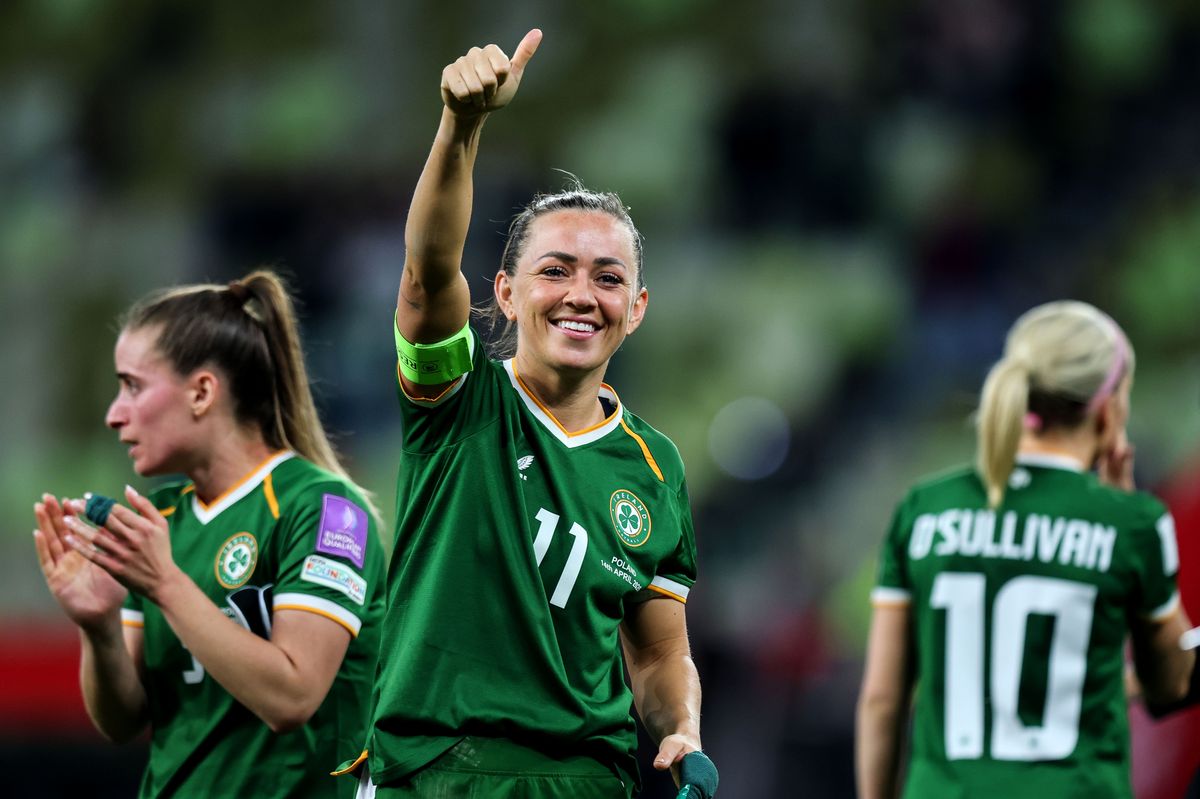 Ireland’s Katie McCabe celebrates after the win against Poland(Image: INPHO/Ryan Byrne)