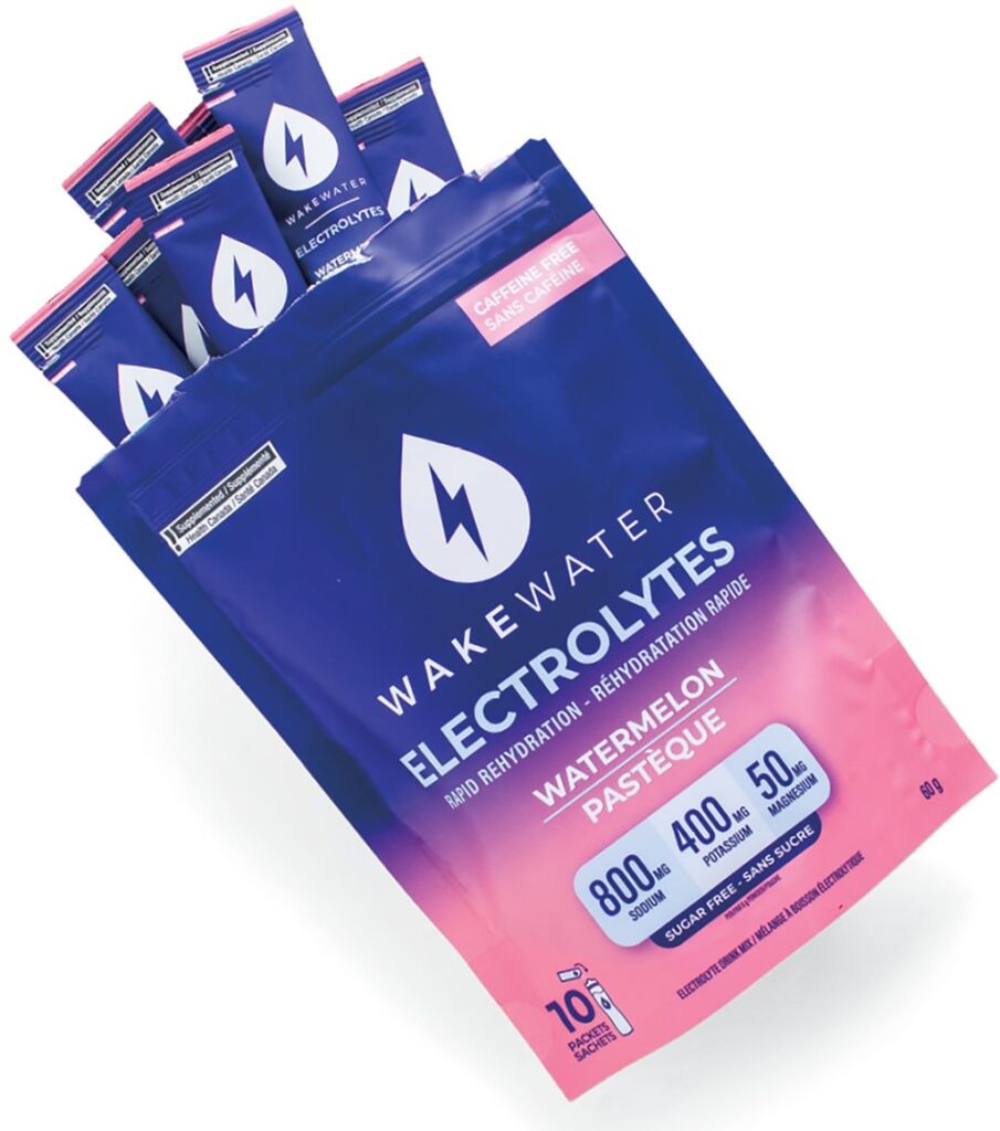 WakeWater Electrolytes Drink Mix is best for heavy sweaters racing in very warm conditions. It tastes distinctly salty and is sweetened with stevia leaf extract. $2.99 each or buy a 10-pack for $22.