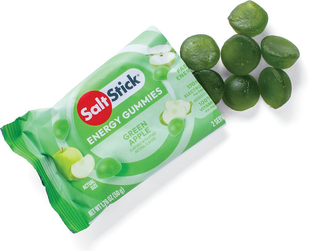 Bonk Breaker chews have been rebranded as SaltStick Energy Gummies. They come in six flavours and each two-serving packet has up to 36 g of carbohydrate and 170 mg of sodium and potassium. $5.99.