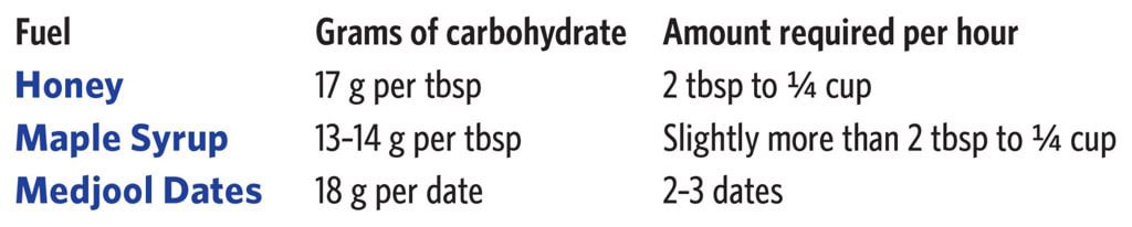 Some runners opt for real foods as race fuel; for example honey, maple syrup or dates make a simple alternative to packaged gels, chews or sports drinks.