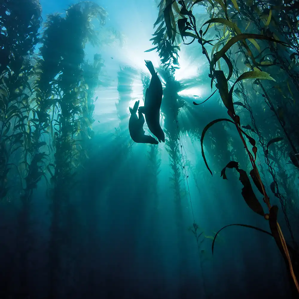 I jumped into the water hoping to find the sprawling kelp forests and sea lion rookery, and in no time at all I was being buzzed by a sea lion. Trying to get photos of these agile animals is a challenge, but that morning, the water was clear and the light angled through the kelp.