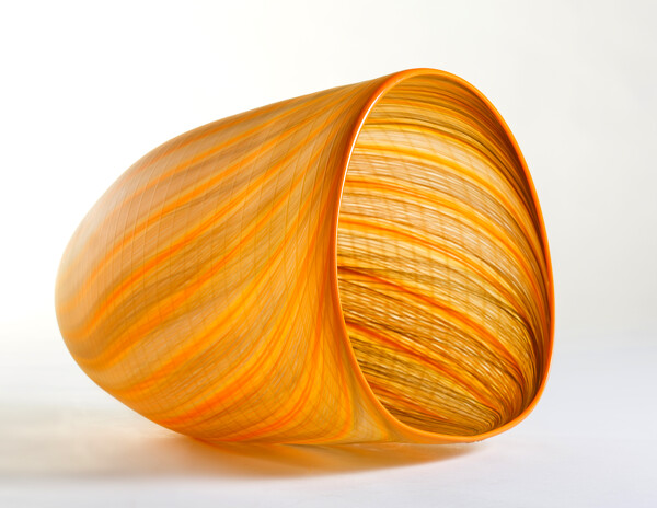 Hot blown and coldworked glass basket by Jenni Kemarre Martiniello, 2017.