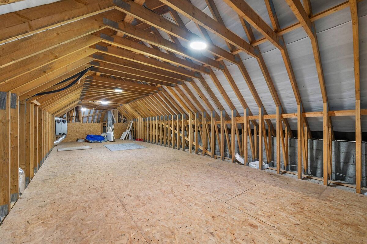 There is a Stira to the attic which is fully floored and extends the entire length of the first floor — its impressive size and array of beams would put you in mind of an ark at first glance. Suitable for storage, it’s far more likely to be claimed by tween or teen householders for a hangout or gaming area, which might well prove to be an all-round win.