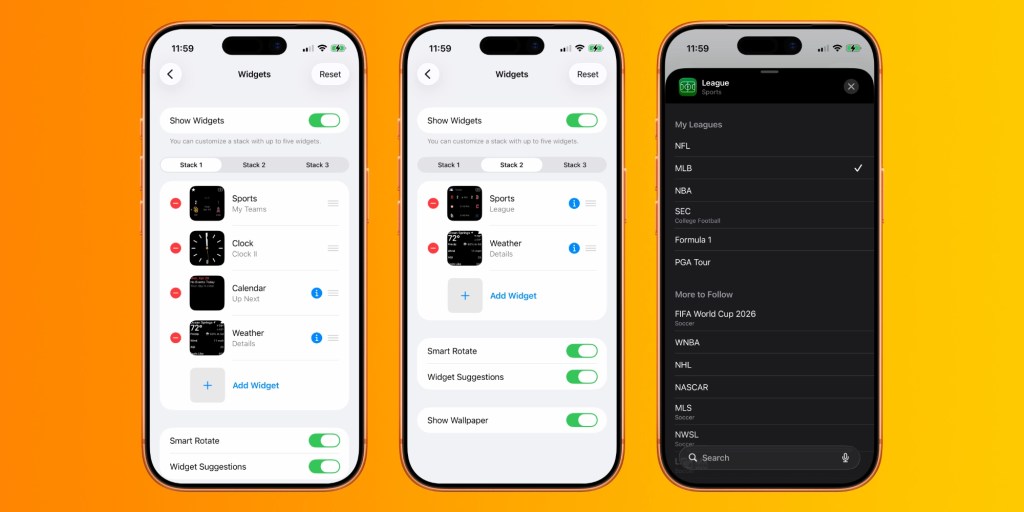 Apple Sports includes four more widgets on iPhone with medium and large versions of My Teams and Leagues.