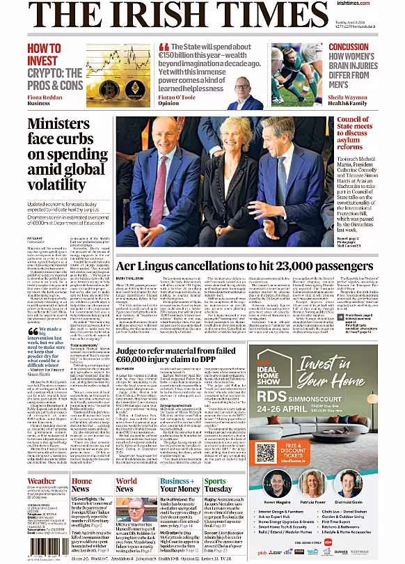 The Irish Examiner reports that the Government’s spring economic forecast will be brought to Cabinet today by finance minister and Tánaiste Simon Harris and public expenditure minister Jack Chambers.