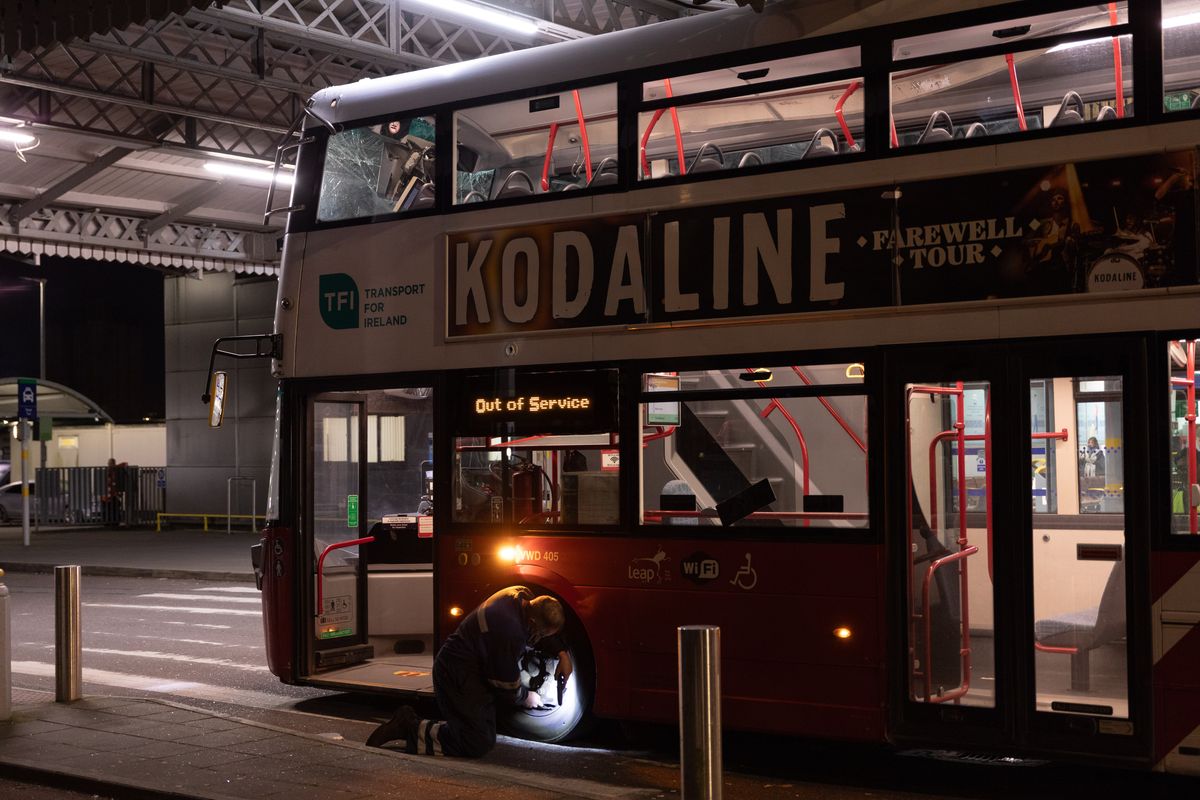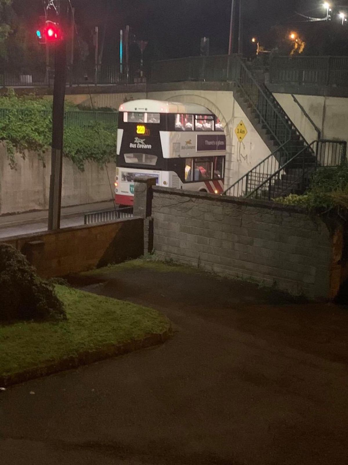 CorkBeo has been told it was the 11.15pm 214 towards Glanmire and there were a few passengers on board. One passenger told local photographer Ryan de La Cour, who got photographs of the incident: “I saw the bus coming down the road and picked up my pace to catch it at the stop, in hindsight, probably should have let it pass, but I needed to get home. I got on and sat upstairs at the very front right seat.”