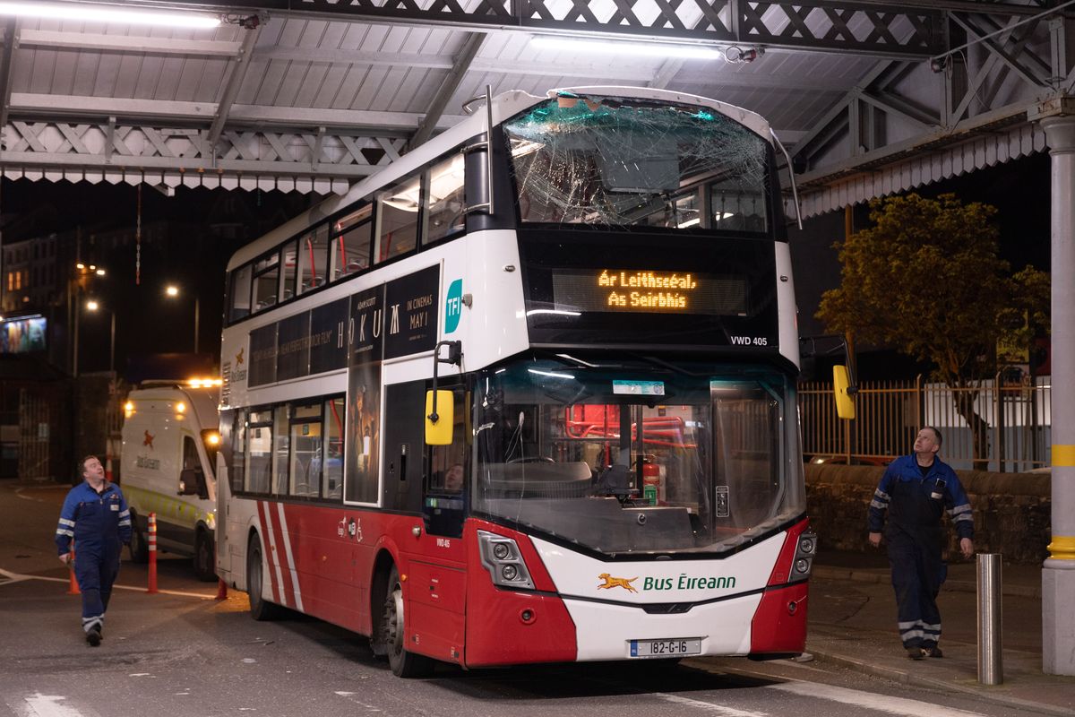 A bus collided with an overhead canopy at Cork’s main railway station late last night – it’s understood there were no serious injuries, but there were a few passengers on board, including four on the top deck.