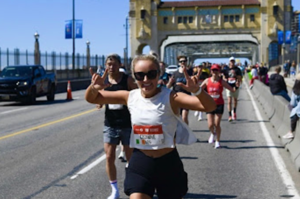 Caoimhe running the 2025 BMO Vancouver Marathon.