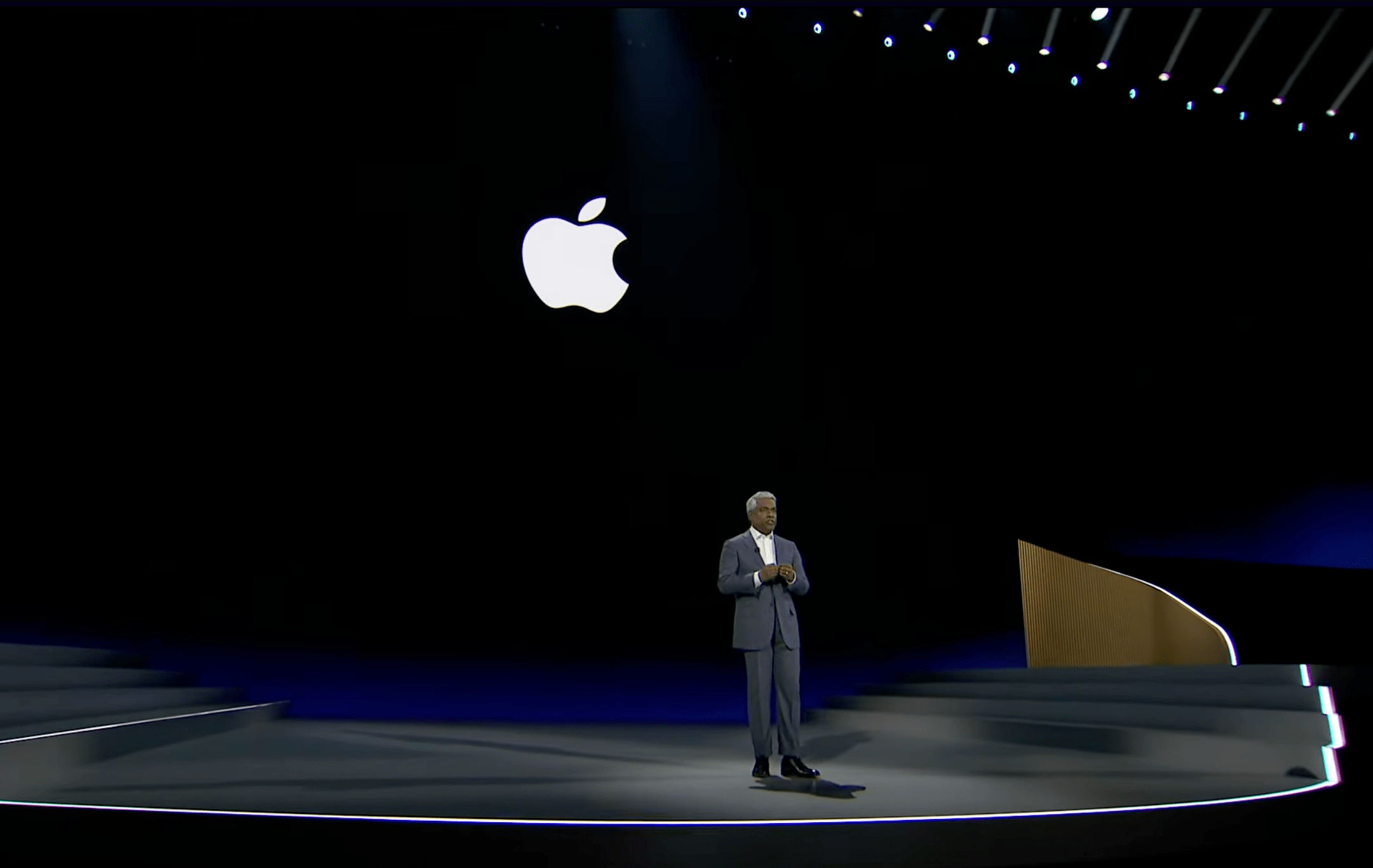 Spotted on the Google stage: a giant Apple logo.