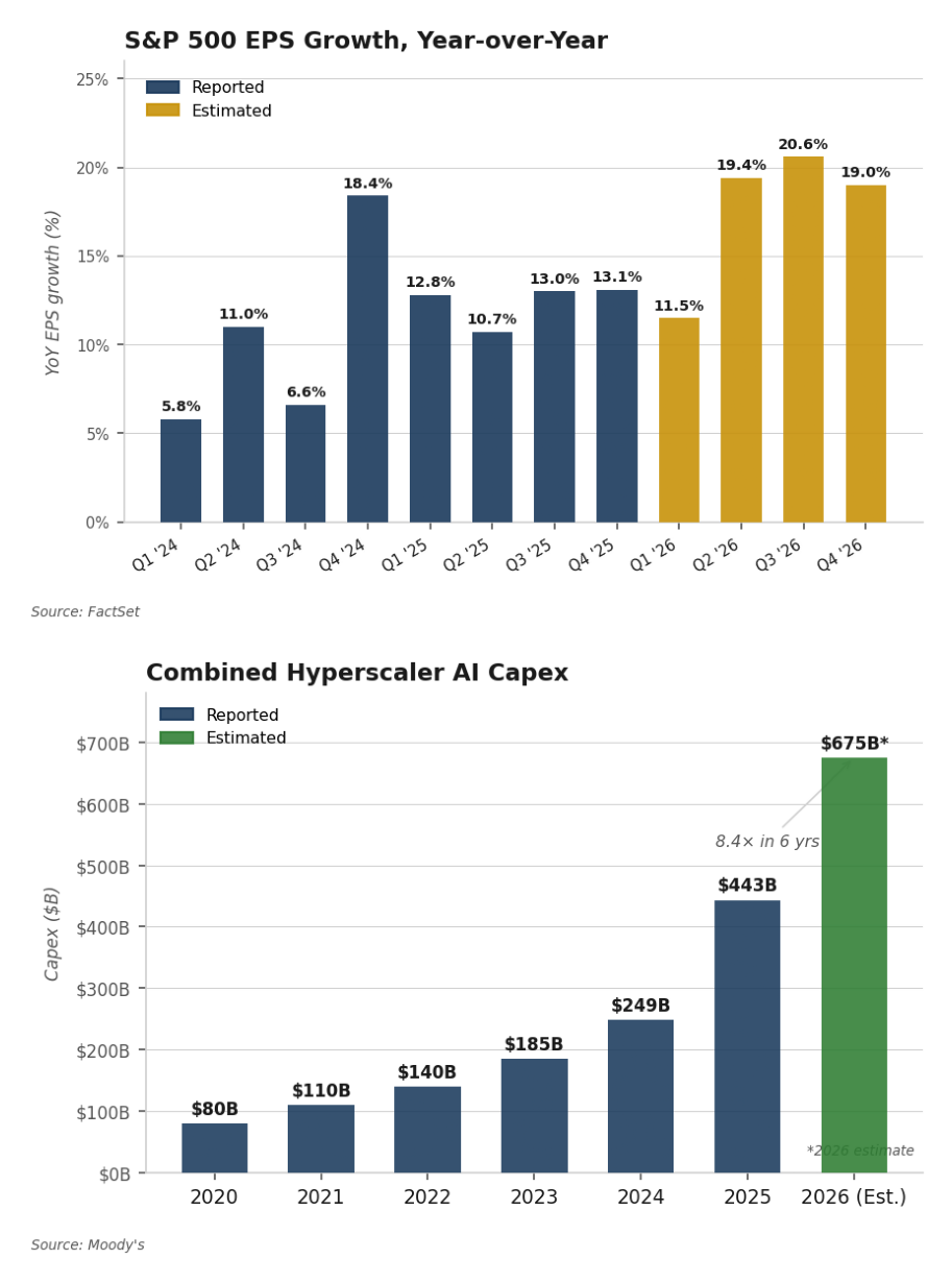 While AI is helping companies across the spectrum improve their profitability, it is also responsible for a surge in capital expenditures, another source of profits for companies in the supplier ecosystem. The five “hyperscalers” — Amazon, Google, Meta, Microsoft and Oracle — will spend an astonishing $675 billion this year on data centers and related facilities. That is more than 8 times what they spent as recently as 2020.