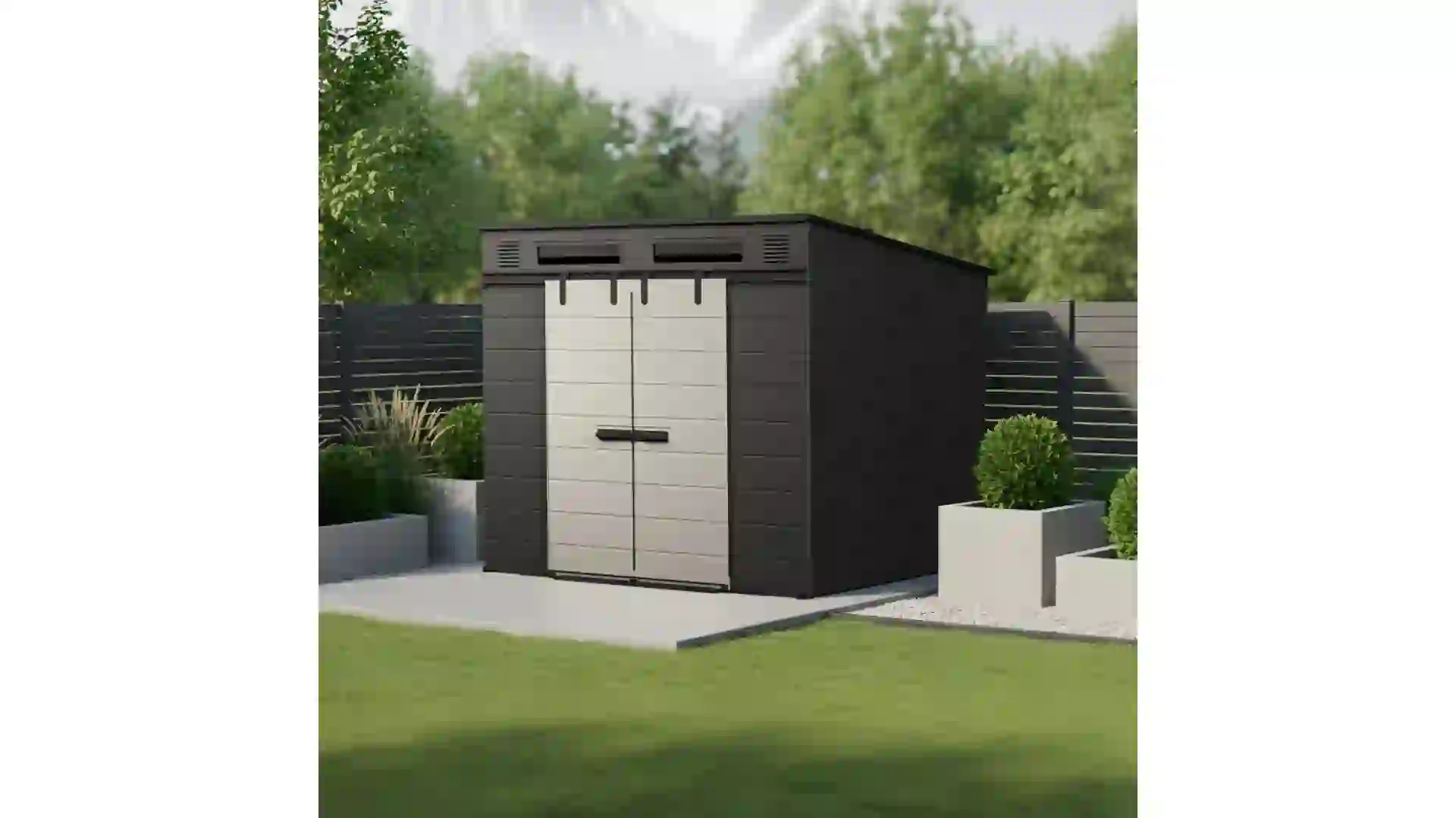 Whether you’re storing bikes, lawn care equipment or yard games, this versatile shed provides protection no matter what the weather is. The Suncast modernist dual barn door storage shed features barn-style doors that create easy access to the items stored inside, and it comes with four tool hooks to help manage organization. Transom windows along the front provide additional lighting for more visibility.Â