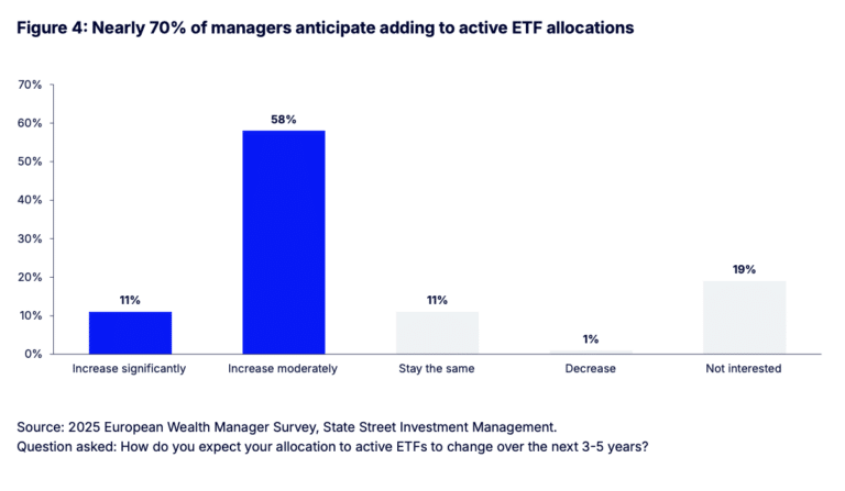 State Street Investment Management’s 2025 EMEA Wealth Manager Survey said nearly all, 88%, of wealth managers expect to use ETFs more frequently in client portfolios, with cost efficiency as the top driver of adoption.