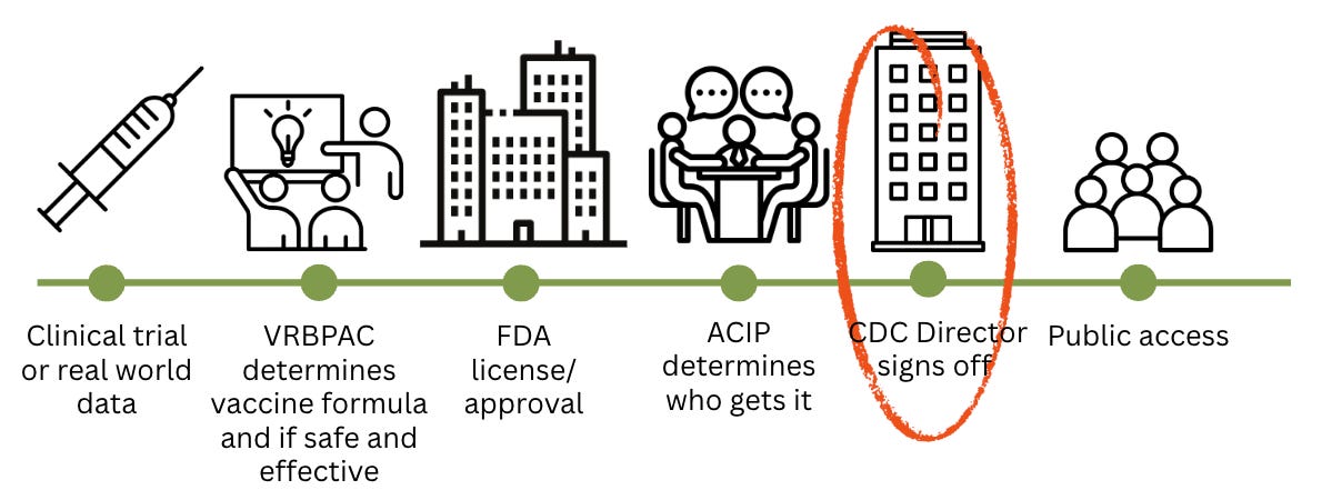 It’s been more than two weeks since ACIP, the vaccine policy advisory committee, recommended Covid-19 vaccines for everyone over six months old. The acting CDC Director finally signed off today. Typically, this approval happens within 24 to 48 hours, so the delay was highly unusual.