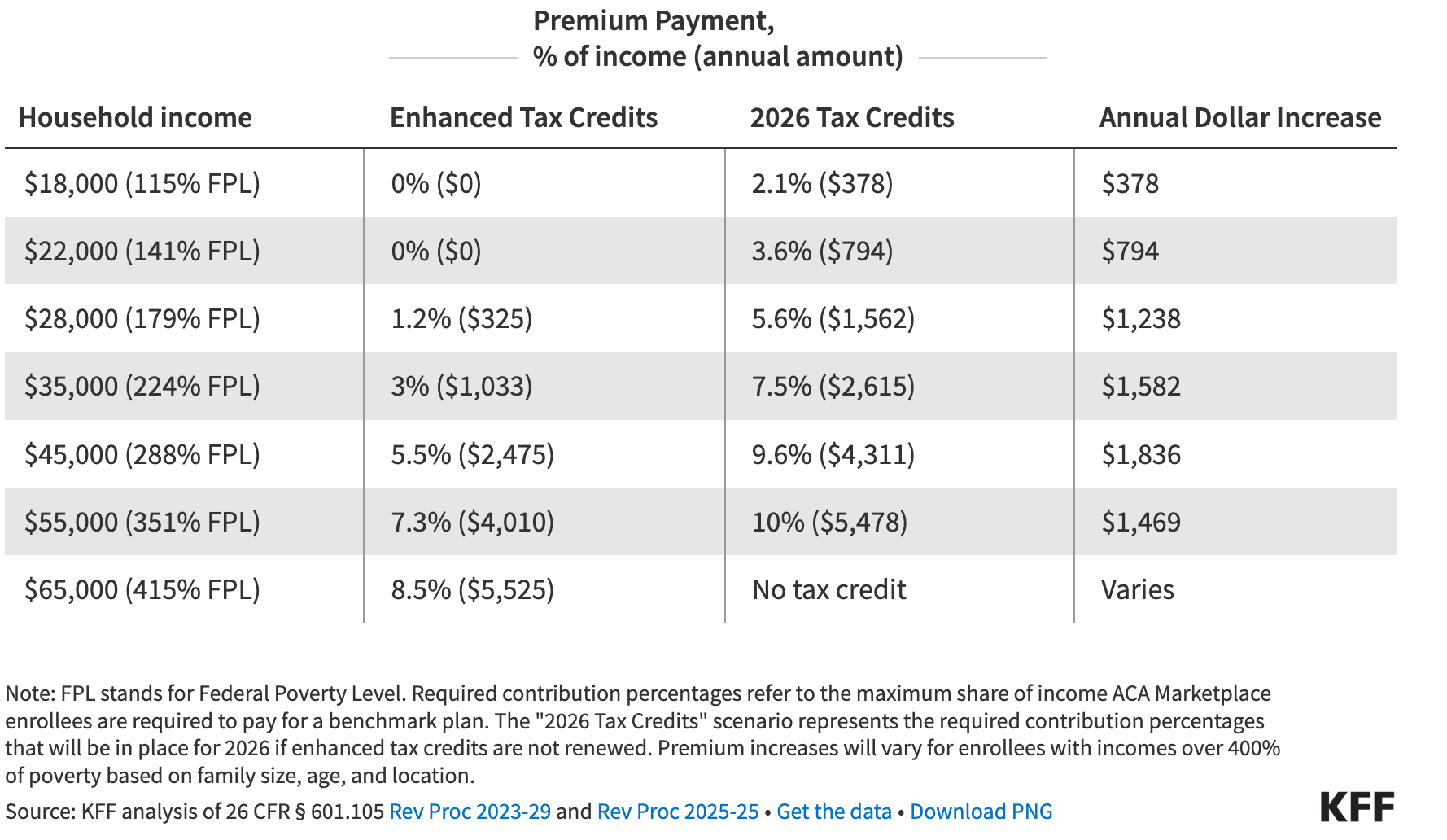 This credit started in 2014, but a few years ago, it was increased to make insurance even more affordable. KFF gave a constructive example: someone earning $28,000 a year currently pays about 1% of their income—around $325 per year—for a standard health plan. If these extra tax credits expire, that same person would have to pay almost 6% of their income, or about $1,562 per year. That’s an increase of about $1,200 in annual costs.