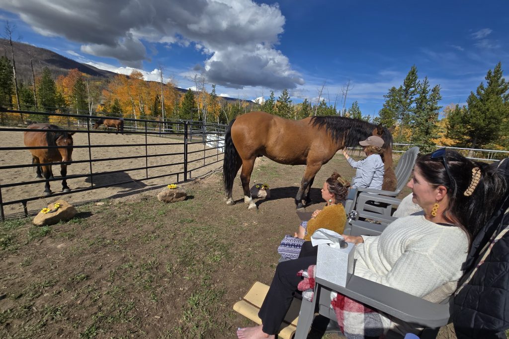 Steamboat Springs resident Lauren Eidt was attending the meditation again, but this session was especially significant. She was remembering her cousin who died one year earlier in a mudslide during Hurricane Helene. After the session, Eidt snuggled with the large, gentle horses through a few tears and quick kisses on a soft mustang nose.