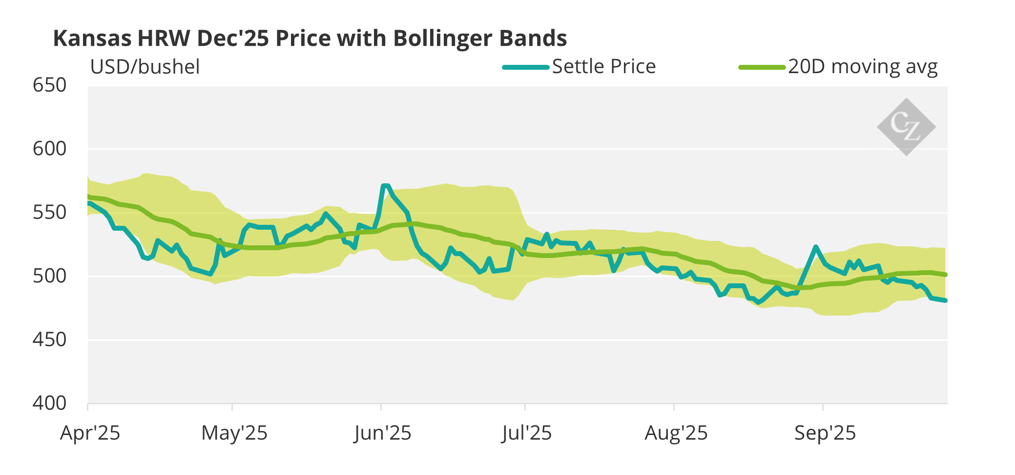 The price chart below shows Kansas HRW Dec ’25 contract over the last six months.