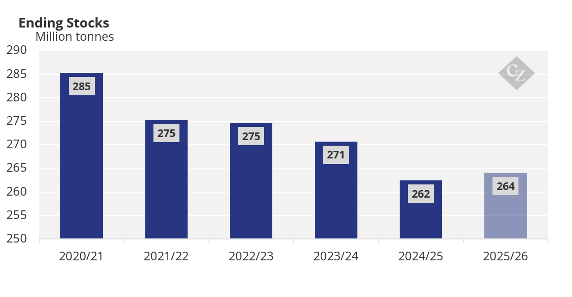 Supply: There has been a reasonable harvest, steadily increasing production numbers across the Northern Hemisphere. Sales have been driven by farmers needing cash or storage over price, forcing a proportion of sales into the dwindling market.