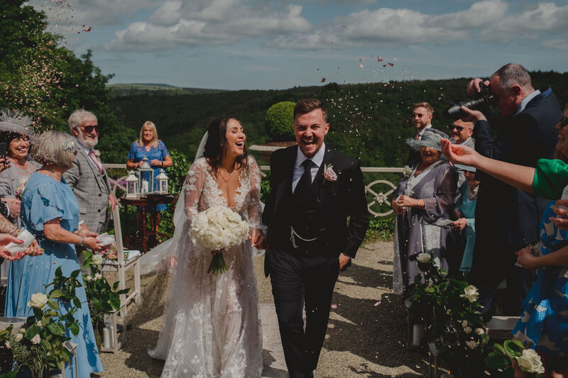 It was an outdoor ceremony, so I was a little worried about the weather. It was all right in the morning, and then the clouds came, and it lashed about half an hour before our ceremony. Everything was already set up and ready to go, so we were panicking a bit. But then the sun just flicked on and the skies cleared, and the weather was unbelievable.