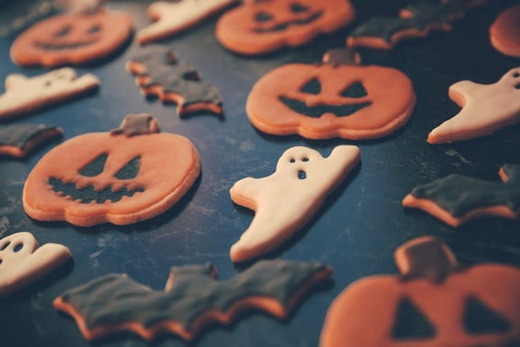 Instead of buying lollies, bake Halloween-themed biscuit treats. (Make sure people with allergies know the ingredients).