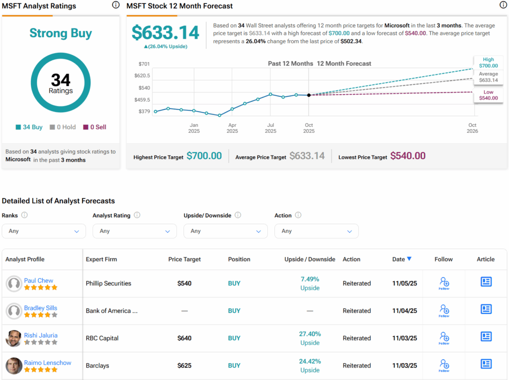 Turning to Wall Street, analysts have a Strong Buy consensus rating on MSFT stock based on 34 Buys assigned in the last three months. Furthermore, the average MSFT price target of $633.14 per share implies 26% upside potential.