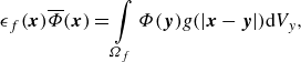 \begin{align} \epsilon _{{f}}(\boldsymbol{x}) \overline {\varPhi }(\boldsymbol{x}) = \int \limits _{\varOmega _{{f}}}\varPhi (\boldsymbol{y})g(|\boldsymbol{x}-\boldsymbol{y}|) \mathrm{d}V_y, \end{align}