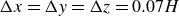 $\Delta x = \Delta y = \Delta z = 0.07H$