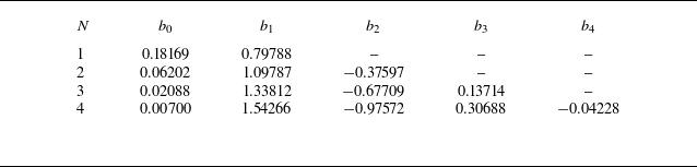 Table 1. Coefficients for the expression for the volume-filtered velocity at the wall given in (3.8) up to